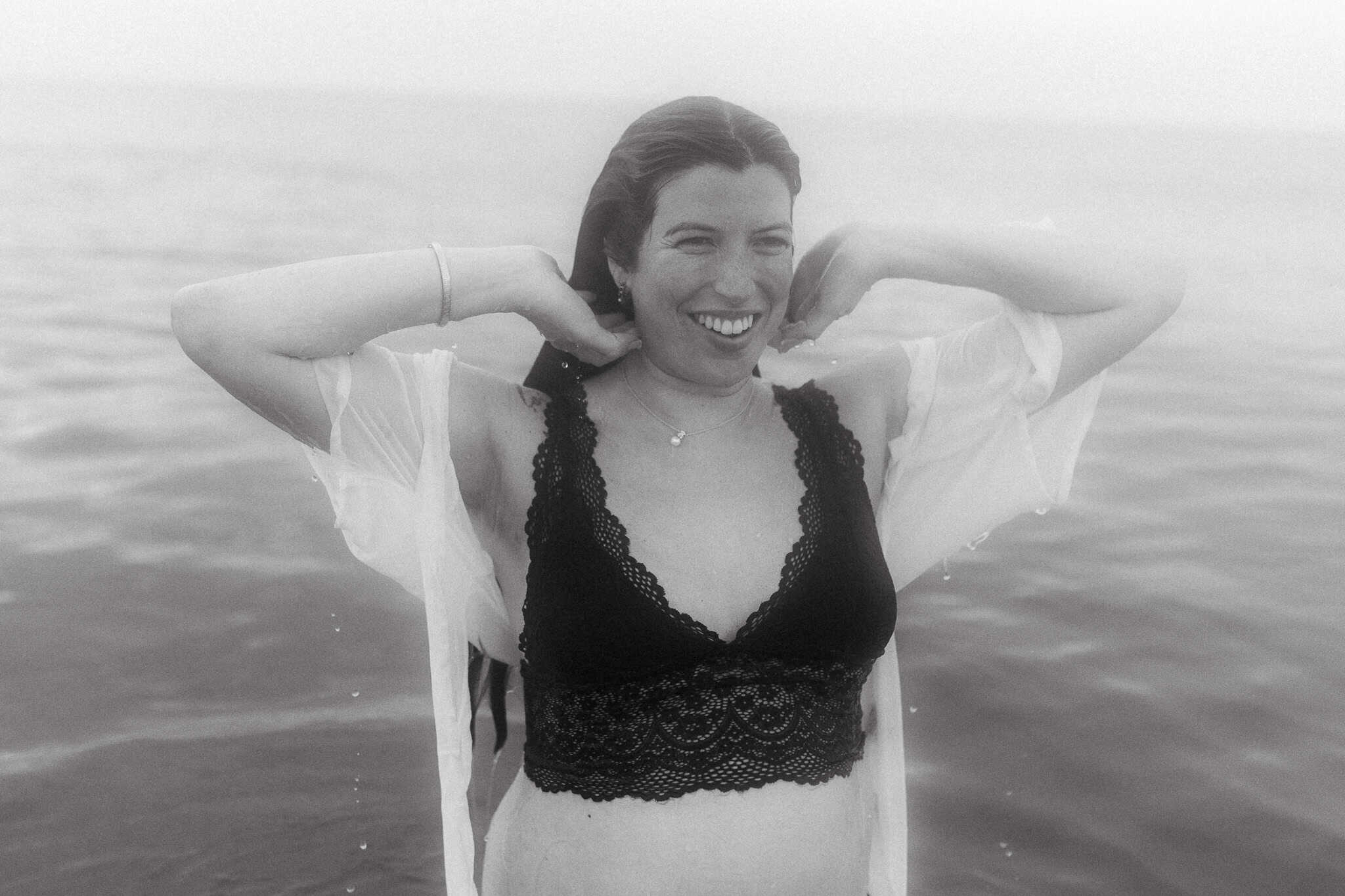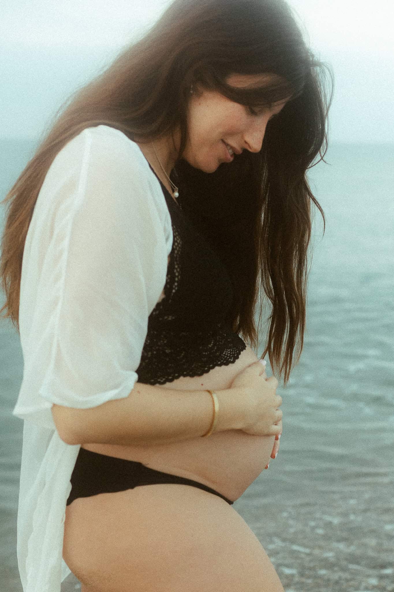 This maternity photoshoot in Costa Brava took place on a moody, overcast day, creating a soft and mystical atmosphere by the sea. As a maternity photographer in Costa Brava, I love how cloudy weather adds depth and emotion to maternity photography.