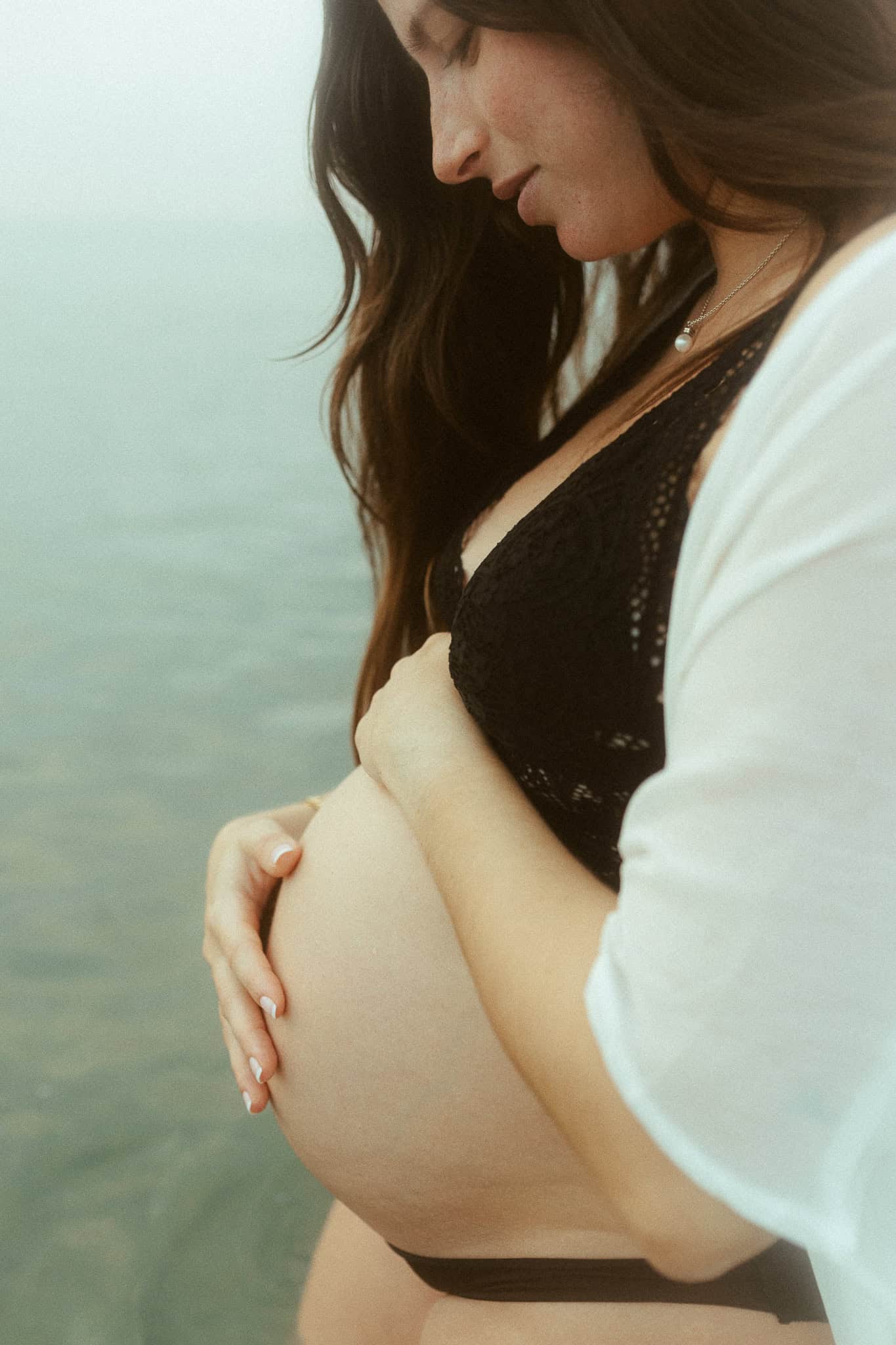 Costa Brava maternity photography doesn’t need sunshine to be beautiful — sometimes the most emotional images are created on quiet, dramatic days by the sea.